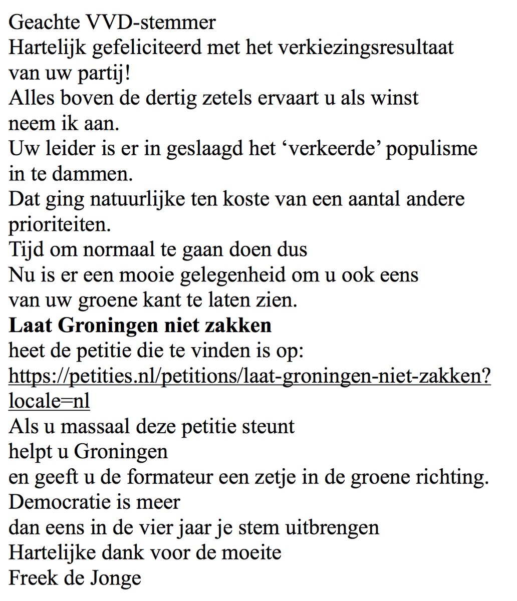 Aan alle VVD-stemmers: wilt u dit doorsturen aan alle VVD-stemmers