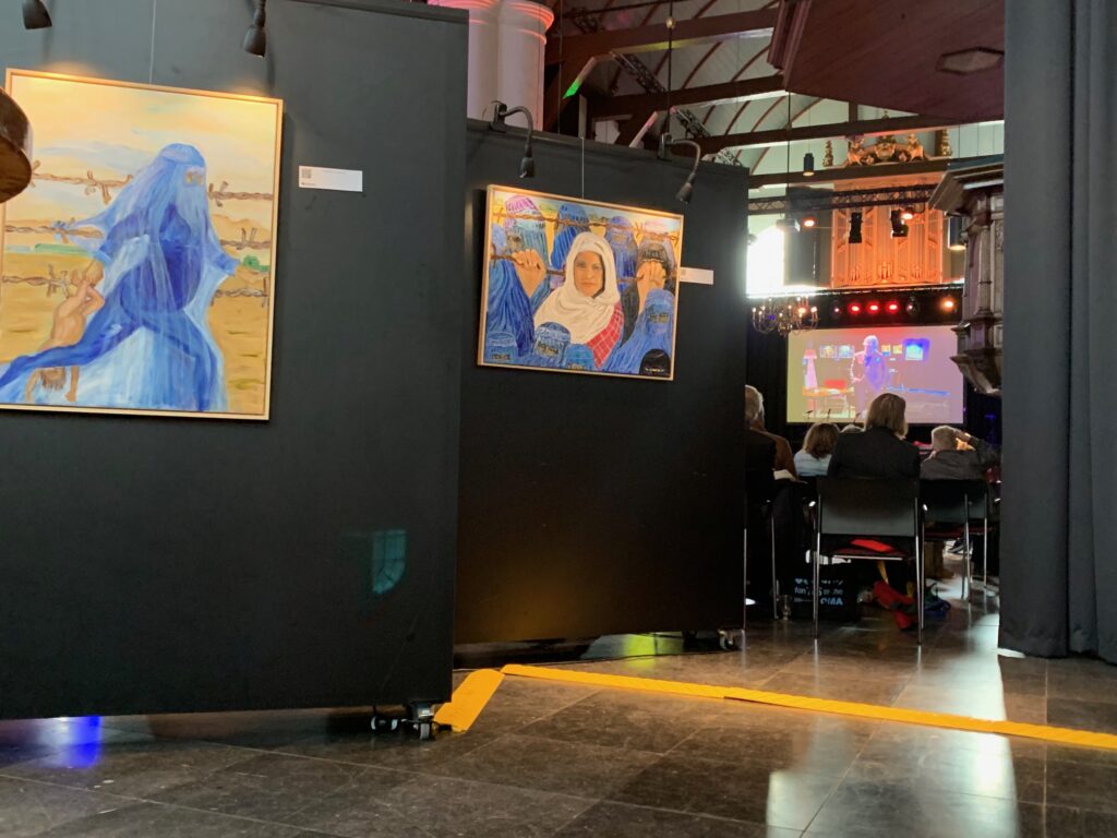 Tevens waren de schilderijen van Hella de Jonge te zien die ze maakte in Coronatijd. Zie het artikel daarover op haar website.