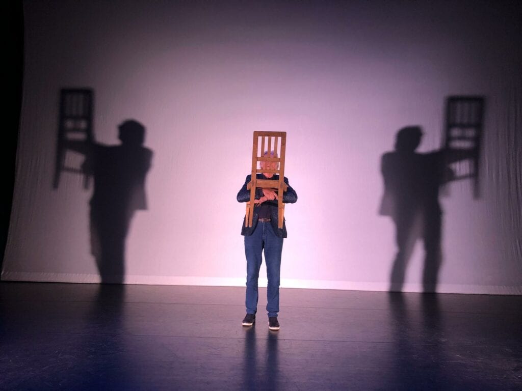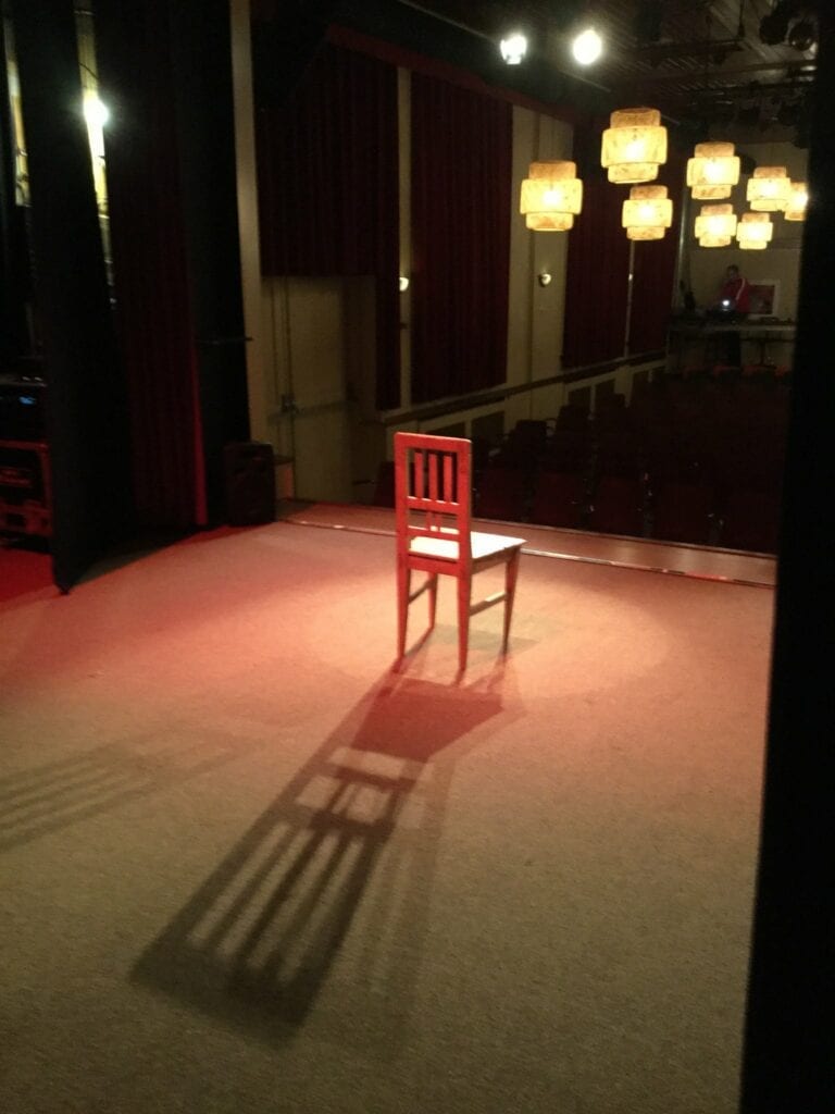 De voorstelling verliep al vlotter dan de eerste. Het proces voltrekt zich eigenlijk altijd op de zelfde wijze. De vorm begint zich te openbaren. Bij opkomst werd ik gevolgd door een zestal laatkomers die allemaal een stoel bij zich hadden omdat het vol was. We vormden een vrolijke optocht die tot veel hilariteit leidde.