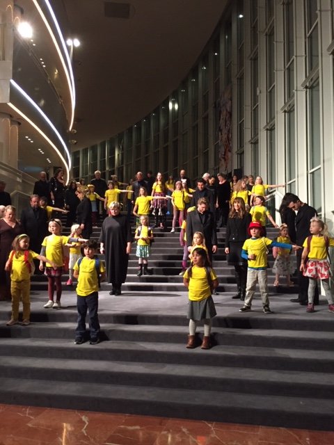 We werden getracteerd op een optreden van een jeugdkoor dat samen zong met een deel van het grote operakoor. De overrompelende ontroering die de kinderen losmaakten werd indrukwekkend overstemd door het vocale geweld van de volwassenen professionals.