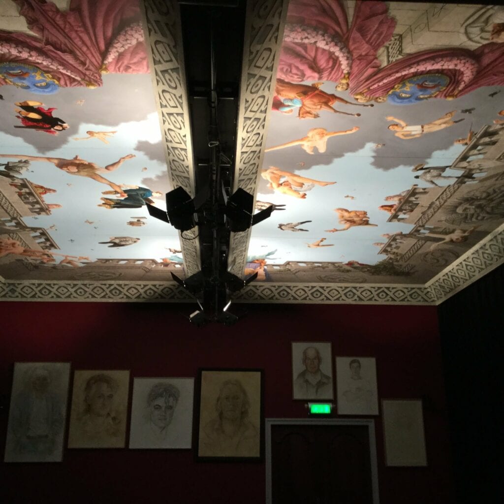 Gisteren was ik in De Wegwijzer in Nieuw en SintJoosland het theater met het mooiste plafond van Nederland. Geschilderd door de alweer ruim twee geleden overleden Goesenaar Reinier de Muynck.