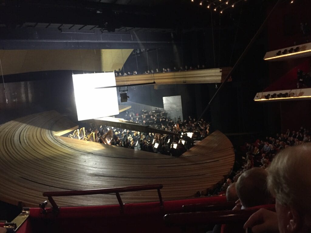 We aten op het toneel van Het Muziektheater naast het indrukwekkende decor van de Walküre. De opera van Wagner in de regie van Pierre Audi waarmee men de komende dagen afscheid van de meester neemt.