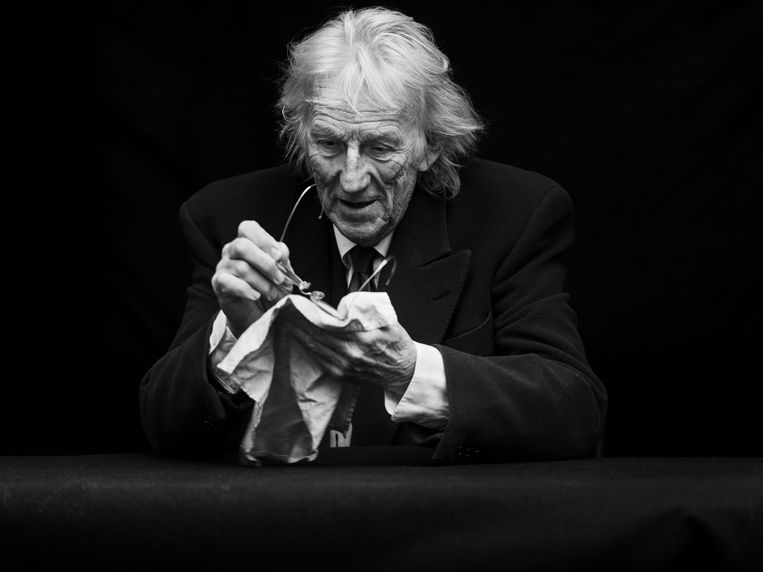 ‘Te laat. Te vroeg moet je niet doen. Als je in een zaal voor vijfhonderd man staat en even niet op een bepaald woord komt, is dat ook wel interessant. Als je de soepelheid nog hebt, kun je daar iets mee doen. Een beetje ontluistering is dramatisch interessant. Het moet wel onder controle blijven: je kunt niet als dementerende oude man voor de zaal gaan staan. Maar wie weet wat er nog in het vat zit?’
