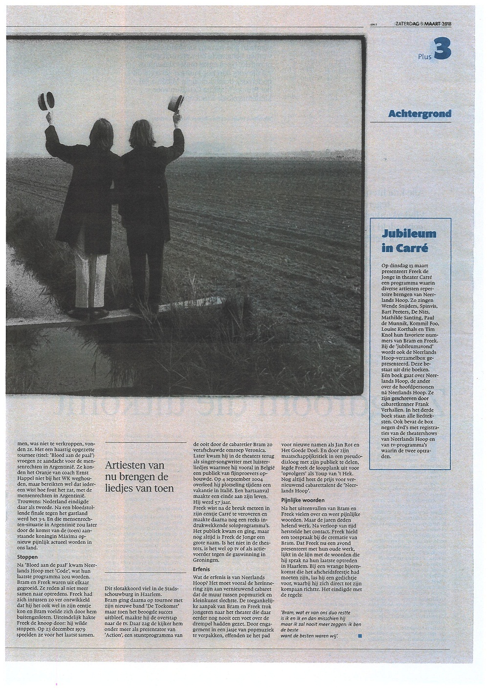 Artikel Neerlands Hoop in het Noord Hollands Dagblad, 3 maart 2018