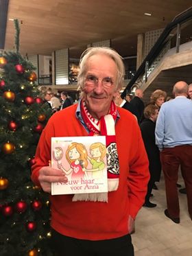 “Hallo dhr De Jonge. Op 12 december staat u in theater Orpheus in Apeldoorn. Mijn vraag is of u wellicht een boekje van Stichting Haarwensen zou willen signeren. Dit boekje wil ik voor een actie gebruiken voor deze stichting (waar ik vrijwilliger ben), die kinderen tot 18 jaar een gratis pruik geeft van echt haar, omdat zij door behandeling van kanker of door ‘alopecia’ hun haar zijn verloren. Het boekje is gemaakt voor kinderen in kindertaal om vriendjes, klasgenoten e.d. duidelijk te maken wat er gebeurt als ze ziek worden. Wellicht mag ik ook een foto maken om er in te plakken. Met vriendelijke groet Dirk Groeneveld”