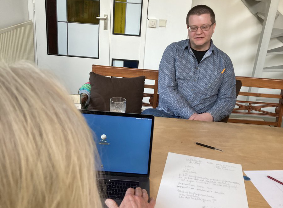Niet dat het ideaal is, alleen maar eenlingen tegenover je. “Een zaal zorgt voor flow, waardoor je na een aantal voorstellingen ritme opdoet. Dan kun je grappen goed gaan timen. Dat is nu echt wel een stuk ingewikkelder. Je kunt aan één persoon niet aflezen of iets werkt.”
