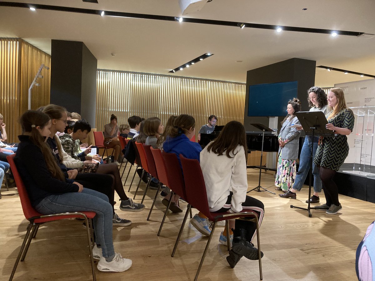 Vanmorgen bij de kick off van het Nationale Opera-educatieproject ‘Ongein’met leerlingen van De Kronenburgh uit Rijswijk. Onze stichting sponsort dit project waarbij de opera Jevgeni Onjegin (Poesjkin/Tchaikovsky) bewerkt wordt tot een afscheidsmusical voor de basisschool