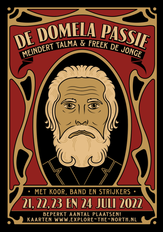 Samenwerking tussen Meindert Talma en Freek de Jonge in De Domela Passie. Locatievoorstelling in het buitenmuseum It Damshûs in Nij Beets.