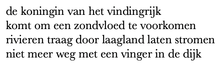 gedicht inn opdracht van het Waterschap Amstel Gooi en Vecht als Ode aan de Dijken waar de visser bot vangt de koe een haas de beste stuurlui aan wal staan te kijken wij ons rijk polderen dankzij de dijken werd de zee meer maar ook minder helaas gaat hier onder verder