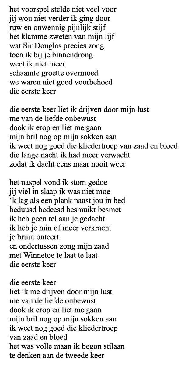 Eerst even naar De eerste keer luisteren. https://t.co/x1OZtTh14u Op het laatst beslisten we dat er andere woorden op die melodie moesten komen. Oorspronkelijke tekst zie bijlage. Vroeg Pierre Kartner voor de stoute versie 2de stem te zingen. Wou hij niet. Dat hij vrede in ruste https://t.co/OPITjoSqAv
