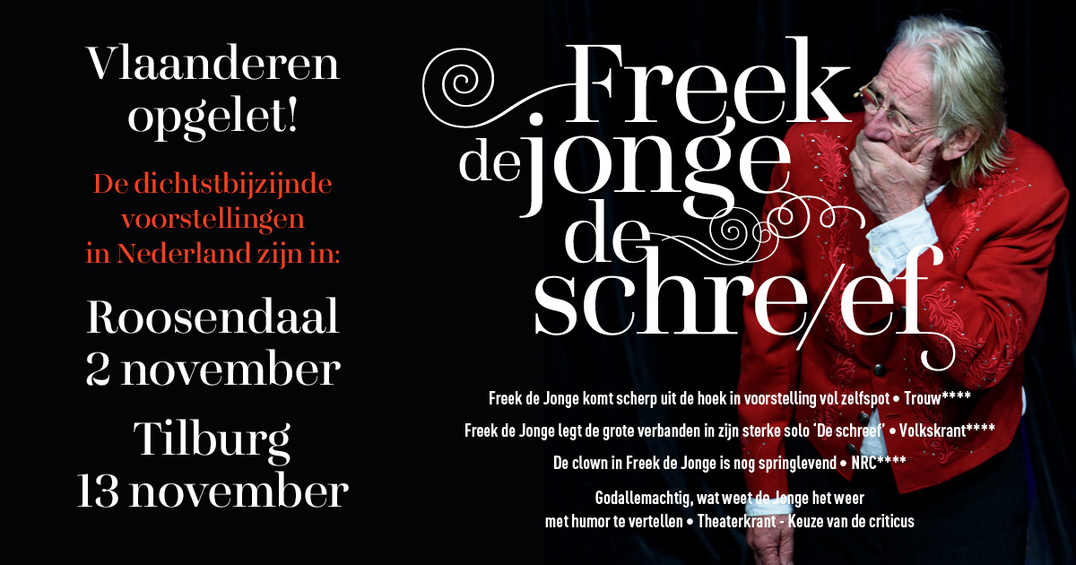 Voor de fans in Vlaanderen! Helaas zijn er geen voorstellingen in de tour opgenomen in België. We kunnen alleen maar wijzen op een paar voorstellingen in Zuid-Nederland die binnen jullie bereik liggen: