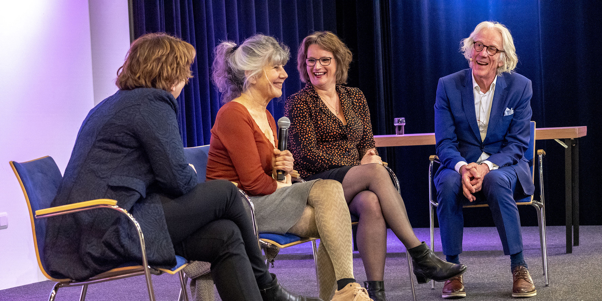In het aansluitende vraaggesprek, geleid door Hella’s man, cabaretier Freek, was er voor Kitty, Hella en oncologe Carla van Herpen nog even tijd om te reflecteren op de documentaire. Waarom wilde Hella Kitty bijvoorbeeld zo prominent in haar film? “Toen ik Kitty destijds op het podium zag, vond ik haar zó sterk. Ze vertegenwoordigde drie voor mij heel belangrijke punten: het niet luisteren van de arts, de bijwerkingen van de medicatie, maar ook het feit dat ze dat alles creatief weet om te zetten in mooie voorstellingen.”