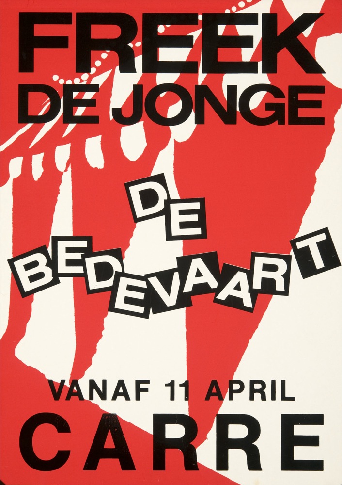 Freek de Jonge: ‘In 1979 ging ik het Denkbeeld-programma presenteren. Mensen vertelden daar over hun geloof in de astrologie enzovoort. Ik vond het te benijden naïevelingen, maar toen ontdekte ik dat die mensen interessant waren om naar te luisteren. En dat ze heel leuk en spiritueel waren, of ze nou volgelingen waren van Bhagwan, EO of de katholieke kerk. Ze deden me denken aan een preek die mijn vader vaak hield over Henoch die met God eindjes opliep totdat God zei: “Nou zou ik maar niet meer teruggaan. Ik zou maar met mij meegaan.” Volgens mijn vader stond het wandelen met God voor mediteren, dus steeds dichterbij het hogere komen, contact verliezen met het aardse, het materiële. Zijn eigen leven is ook een beetje zo verlopen. Ik besefte: de enige kans om te ontsnappen aan de werkelijkheid die in alle opzichten verschrikkelijk is, is contact zoeken met wat boven de werkelijkheid uitgaat. Voor mij was dat bevrijdend. De titel De Bedevaart is evenmin als de andere titels van mijn werk toevallig. (…) De Bedevaart gaat over de tocht die ik heel bewust in m’n eentje heb afgelegd. Het is de afronding in feite van een periode die als een huilbui heeft gewerkt. De Bedevaart is een voortzetting van De Mars en De Mars is voor een groot deel ontstaan uit het verhaal dat ik hield tijdens een opening van de tentoonstelling van Jopie Huisman. Ik vond zijn schilderijen altijd al buitengewoon prachtig. Toen ik in de buurt kwam waar hij woont, dacht ik: ik ga daar ’s kijken. Hij deed de deur open. Het was in 1980 en ik had meteen het gevoel dat ik hem kende. En tegelijkertijd dat hij de opengevallen vaderrol zou invullen. Dat ik met hem zou omgaan zoals ik met mijn vader had willen omgaan. Toen mijn vader stierf, was hij 53, ik was toen 23. We hadden veel gepraat, maar altijd over oppervlakkige dingen.