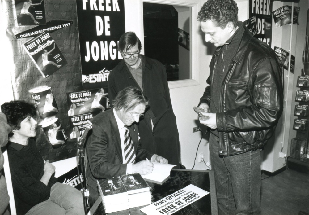 ‘Freek de Jonge reageert uiterst geïrriteerd. Hij is in die kwestie volkomen verkeerd begrepen. Iedereen heeft na zijn interview in Rails het voorpaginaatje van De Telegraaf maar nageluld. En dan nog, “die Bolkestein is een fantastische politicus, iemand die zich goed uitspreekt en zegt wat hij denkt. In de politiek moeten er standpunten zijn. Er moet gepolariseerd worden”.