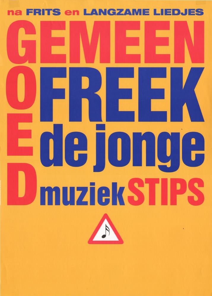 Wat een overrompelend charismatische persoonlijkheid stond daar weer op het toneel. Al meteen bij het eerste liedje over jongens die later mannen willen worden, was ik verkocht. Temeer daar ik bij dit hachelijke onderwerp doorgaans al bij voorbaat ineenkrimp, uit angst met mannelijke snoezigheid om de oren geslagen te worden. Maar zo dom is De Jonge niet. Alle zelfvertederende klippen worden in deze bijna Brel-achtige liedjestekst omzeild. En mocht het nog niet duidelijk zijn dat de zingzegger zichzelf en alle “volwassen” mannen op de hak neemt, dan geeft zijn macho-motoriek wel uitsluitsel. Wat een leuke kerel. (…) Terugdenkend aan dit heerlijk avondje heb ik, afgezien van een paar liedjes, het ene wat mooier dan het andere, maar allemaal prachtig gespeeld en op muziek gezet door een bescheiden en daardoor sterk aanwezige Robert Jan Stips, toch voornamelijk van de conferences en clownsnummers genoten. Zo zie ik Freek diabolisch trommelend in een geheel uit drumstel opgetrokken hok. Of, krampachtig lachend jonglerend – nog knap ook – met vervelende ringen. Om maar te zwijgen van het geniale hondennummer met veel bespottelijke attributen, vieze geluidseffecten en geblaf uit de coulissen, uitmondend in quasi-interactie met niet aanwezige honden. Al die nummers zou ik dolgraag nog een keer willen zien, uit angst dat hij ze misschien niet meer doet, kwaad als hij is dat er te weinig mensen kwamen.’ (Annemarie Oster in HP/De Tijd, 16 mei 1997)