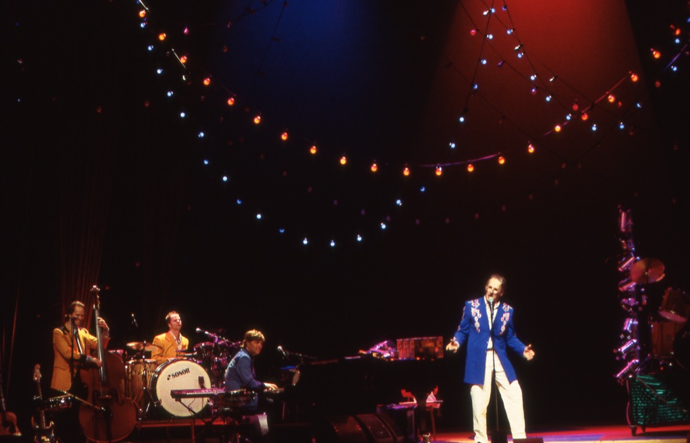 Ook deze keer hangt er feestverlichting en zo’n afzichtelijk bordje met de tekst Hulde aan de jubilaris. Maar is het toneelbeeld al zeer verfraaid omdat de kleinschalige gelegenheidsvoorstelling nu in de grootste theaterzalen speelt, dat geldt nog meer voor het repertoire, dat hij inderdaad meenam uit Langzame Liedjes, maar dat hij herschikte en uitbreidde met nieuwe nummers, zoals Oom Wim is dood.
