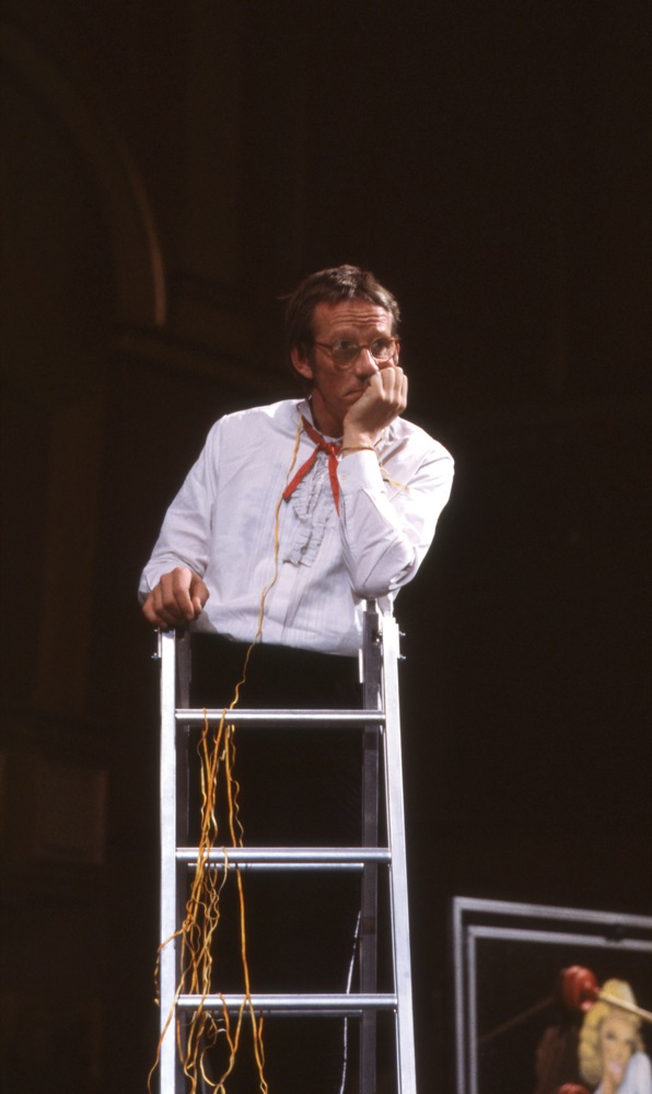 ‘Er gaat niets boven de simpelheid van theater. Op een podium staan en mensen bezighouden. Film heeft z’n eigen sfeer en romantiek. Het is een naïef medium, het verhoudt zich tot theater als een stripverhaal tot proza. Film neemt een deel van je fantasie weg, als je op een podium gewelfd plafond zegt, heeft iedereen toch zijn eigen welving. Bij film kun je door de montage mensen weer in een andere roes brengen. Ik vind film sentimenteel, het is de enige kunstvorm die mij nog tot tranen kan roeren.