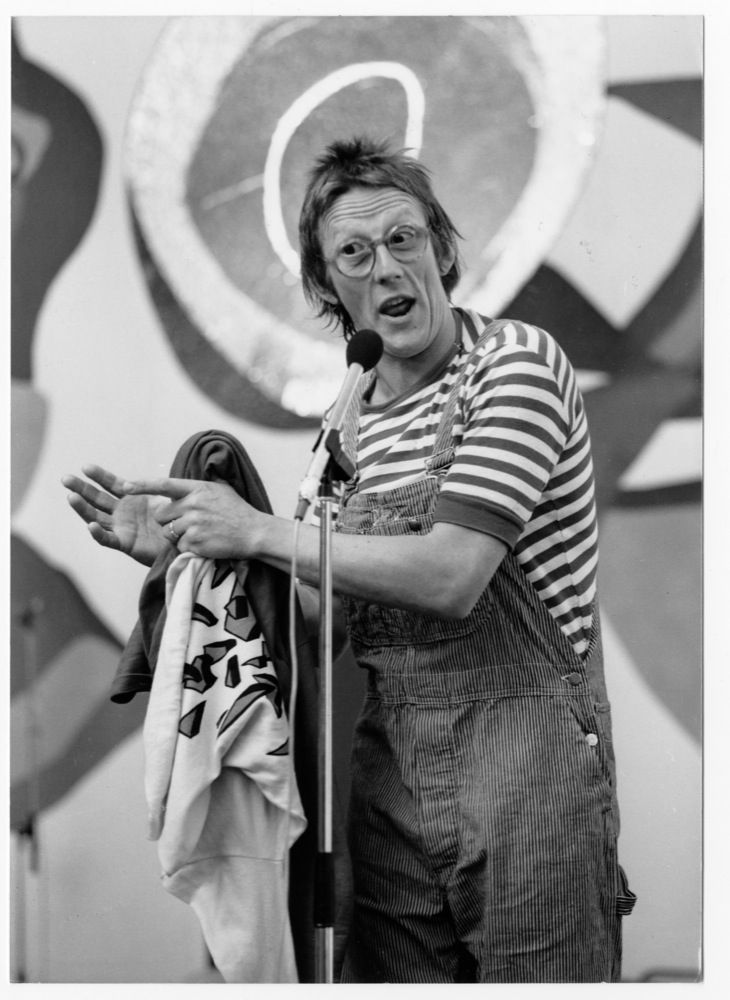 ‘In het kader van het Holland Festival zocht men enige tijd geleden naar een mogelijkheid om nou eens de kunst tot het volk te brengen, dusdanig dat niet alle eventuele bezoekers van het Theater Carré een straatje om zouden gaan en niet alle bereikbare kijkers onmiddellijk de knop om zouden draaien. Welnu, en zo kwamen de gedachten al gauw op Freek de Jonge. Die immers had al lang een naam gevestigd als publiek-trekkend komiek en de laatste tijd bovendien dan nog als pedagogisch ingesteld leider van een bloedserieus televisieforum over geestelijke stromingen. Schuif die twee hoedanigheden in elkaar en je hebt de ideale presentator van een kunstprogramma op brede basis, die zich niet uitsluitend beperkt tot de gebruikelijk aankondiging van “En nou eens iets heel anders”. Zo moet de redenering ongeveer zijn geweest. En waarschijnlijk heeft men over het hoofd gezien dat men in Freek de Jonge te maken heeft met een gedrevene, die als komiek zijn publiek graag laat lachen door hen tegen de schenen te schoppen en die als discussieleider gewend is de hele zaak in de war te schoppen door zich als een Don Quichotte in het strijdgewoel te werpen. En natuurlijk ging Freek ook in Carré, nu hij zo royaal de kans kreeg om zich als een twee-eenheid te manifesteren, als een waanzinnige tekeer met alle figuurlijke en letterlijke uitglijers van dien. En je weet niet precies wat je doen moet: gieren van de pret, in snikken uitbarsten van ellende of zelfs gewoon een graantje meepikken van het aangeboden kunstgenot. Maar de meesten doen, wat ze eigenlijk niet kunnen doen. Zij worden boos.