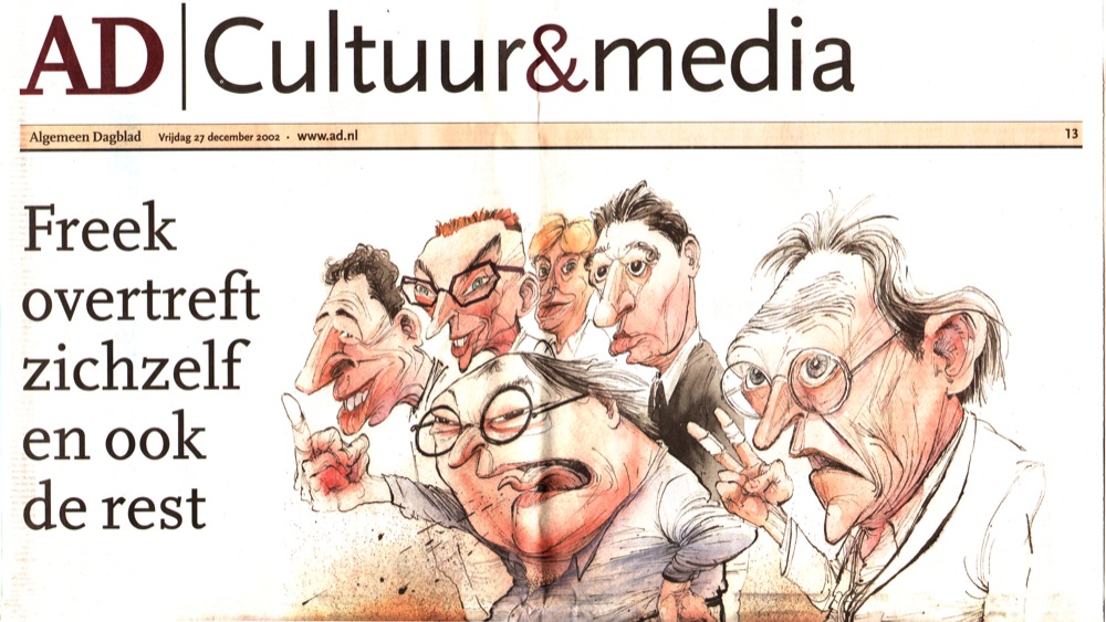 ‘”Freek kan wel eens meer gewicht in de schaal leggen dan al mijn peilingen”, zei opiniepeiler Maurice de Hond onlangs.’ (Voorpagina Trouw, 21 januari 2003)
