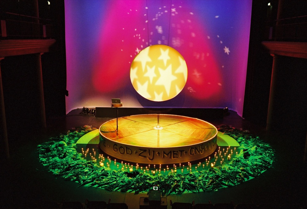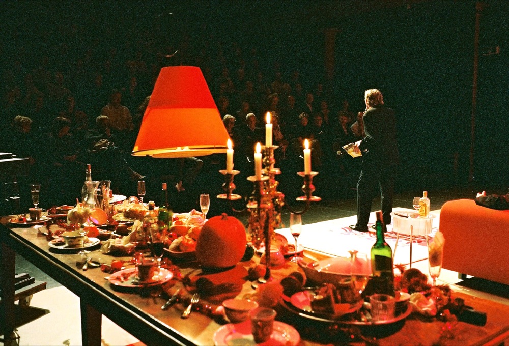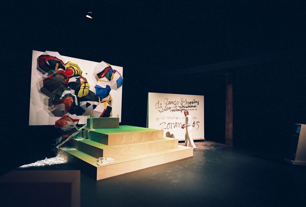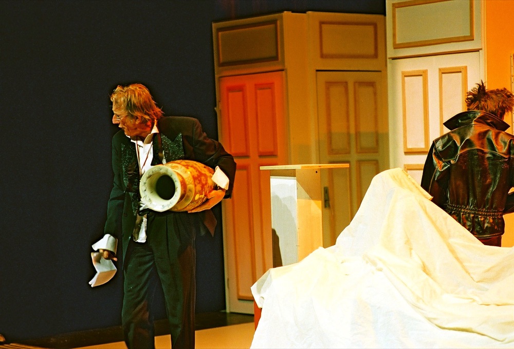 Dat was genereus en stimulerend. Over de bijdragen van Hella en Robert Jan vul ik een apart rubriekje. Het Compagnietheater (Hans Brouwer en Thomas Smit) bleek een ideale plek waar we zonder beperking onze gang konden gaan. We mogen ook de kassa niet vergeten. Uiteindelijk hebben we tussen 31 augustus en 27 november 2004 79 voorstellingen gespeeld die plusminus 14.000 toeschouwers trokken. Vooral het selecte publiek op de dinsdagavond was een factor van belang bij de totstandkoming van een aflevering, die in vijf avonden een eenheid van vorm en inhoud moest worden. Onvoorstelbaar hard en inventief is er gewerkt aan het decor door Peter de Bruijn en consorten. Met weinig middelen en een minimum aan tijd hebben ze voor een optimaal beeld gezorgd.