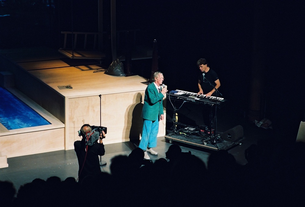 ‘Stel, Freek de Jonge werkt aan een nieuwe voorstelling: De Vergrijzing. Het deel na de pauze staat al helemaal vast. In dat stuk, De Sterfscène, zien we een acteur aan het einde van zijn loopbaan in grimmig, maar toch liefdevol gesprek met zijn zoon. Theo Maassen speelt de zoon. Hij is zowel ernstig als geestig en een van de weinige cabaretiers voor wie De Jonge waardering kan opbrengen. Dat tweede uur van De Vergrijzing zit dus gebeiteld.