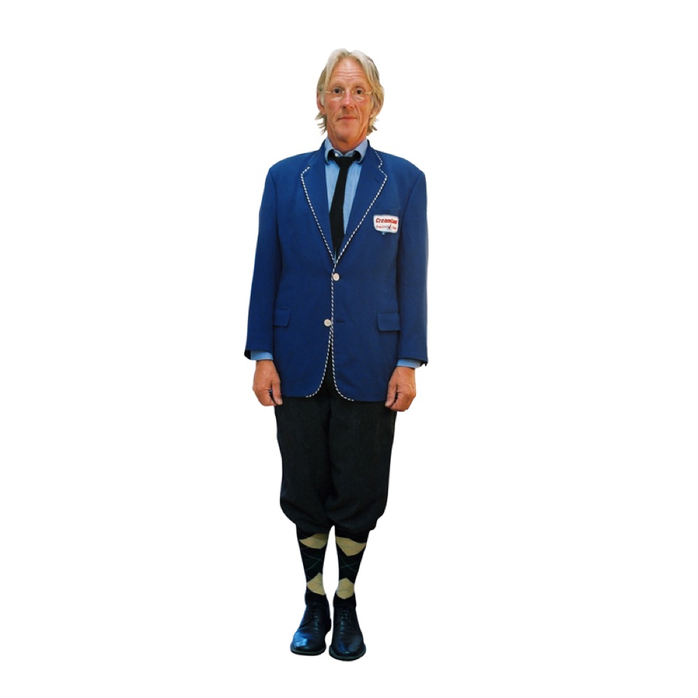 “Ja, ik bedoelde een expositie van mijn beelden in bijvoorbeeld het Stedelijk Museum. (…) Uiteindelijk sta ik nu in het Theatermuseum met mijn kostuums. Ook prima. (…) Ik ben heel blij met die beelden. Freek vraagt me wel eens wat er zonder hem van mij geworden was. Ik denk dat ik het wel gered had. Misschien was ik dan wel een grotere beeldhouwer geworden. Toch kan ik me niets beters voorstellen dan dit. Het klinkt misschien tuttig, maar ik ben echt heel gelukkig dat het zo is gelopen. Tien jaar geleden wilde ik per se met mijn beelden in een museum. Nu denk ik: kom ik er niet, ook prima. Het Theatermuseum is prachtig”.’ (Interview Merijn Henfling met Hella de Jonge voor Het Parool, 14 augustus 2004)