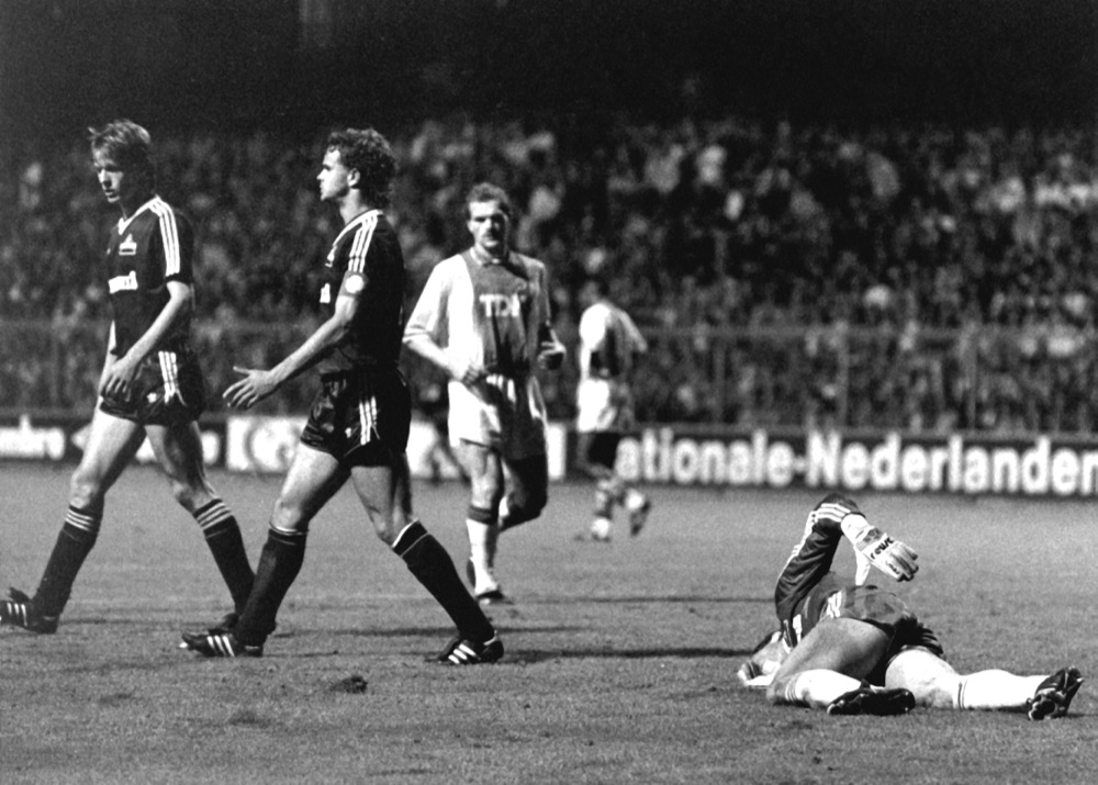 De cabaretier riep tijdens de wedstrijd in het Duits de Oostenrijkse president Waldheim op nazi-jager Wiesenthal te bellen. Dit grapje viel slecht bij de Europese voetbalfederatie die mede hierom Ajax voor een jaar van Europees voetbal heeft uitgesloten.