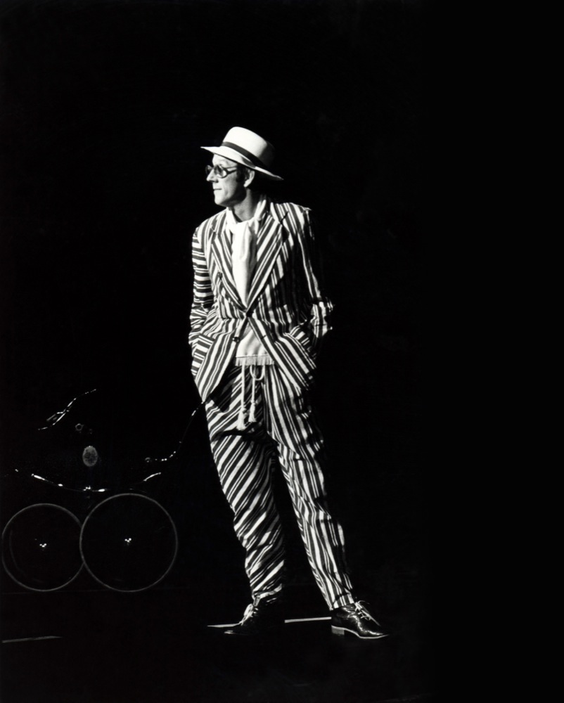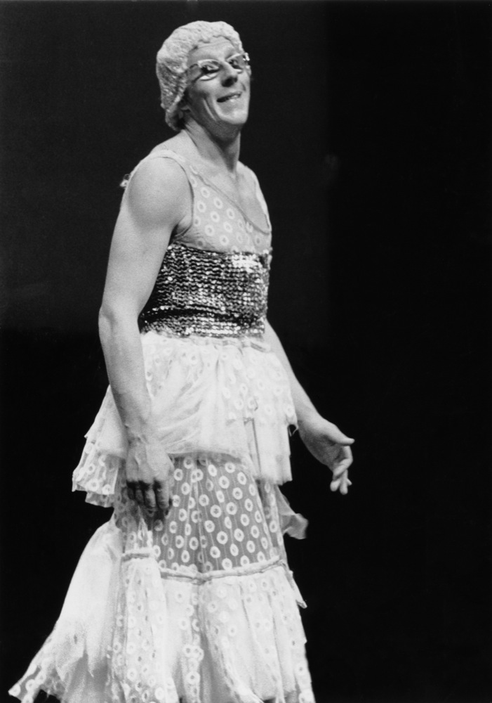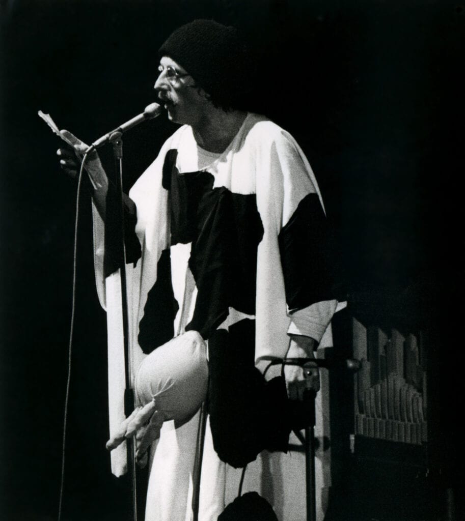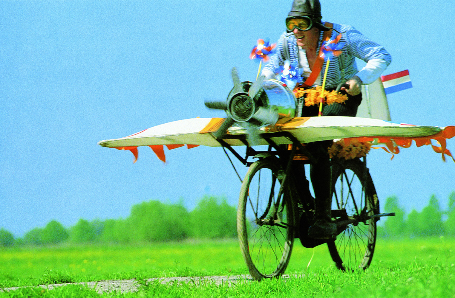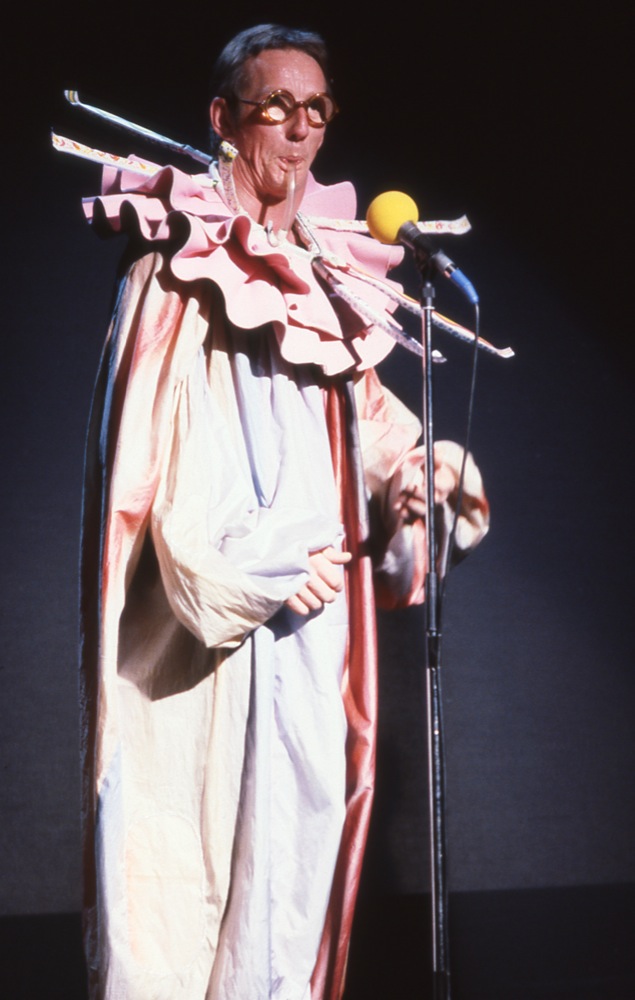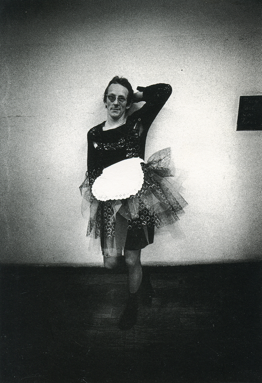 Un koe. Kostuum gemaakt door Hella met een ballon met een roze panty als uier. Foto: Marc Mildner.