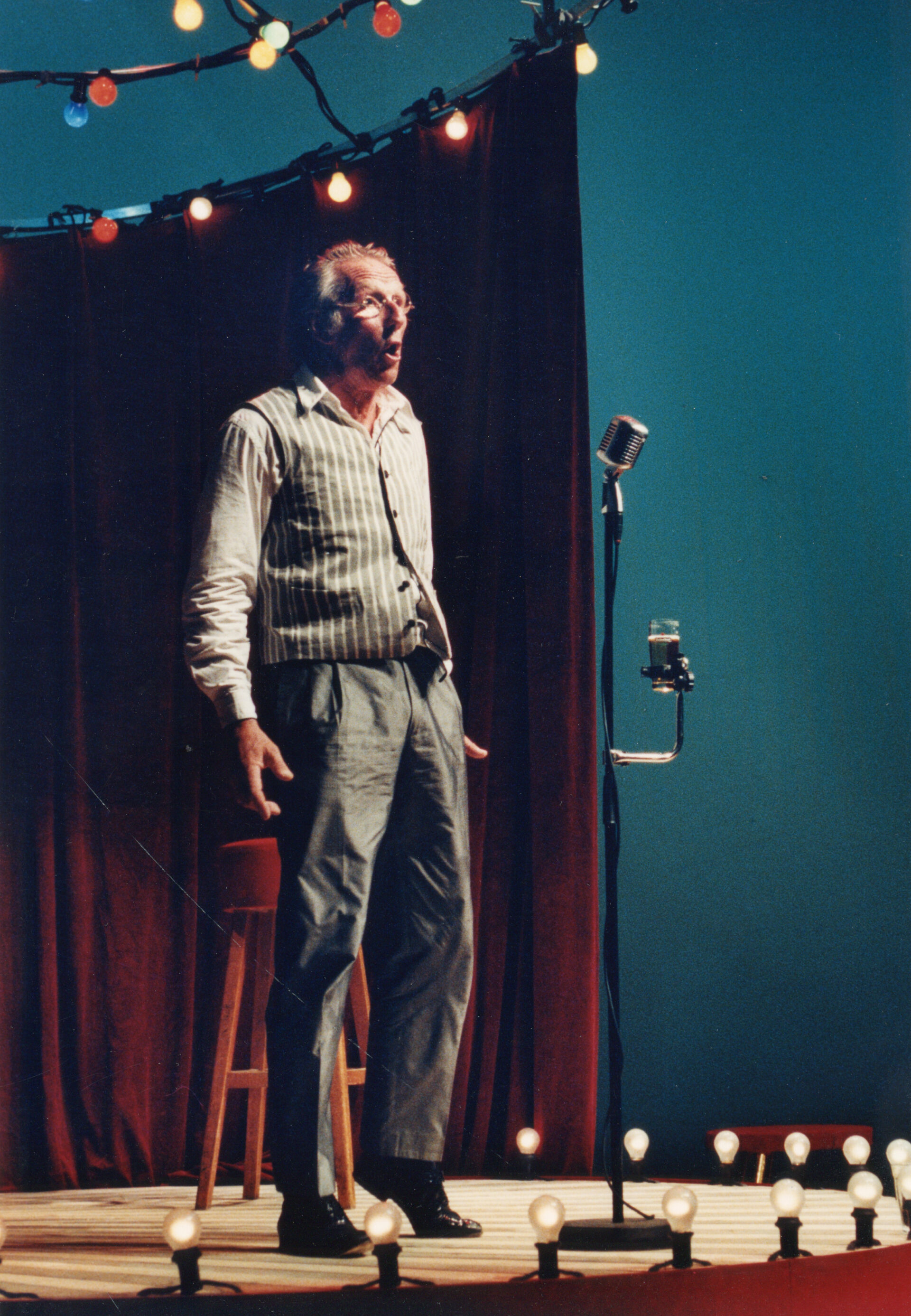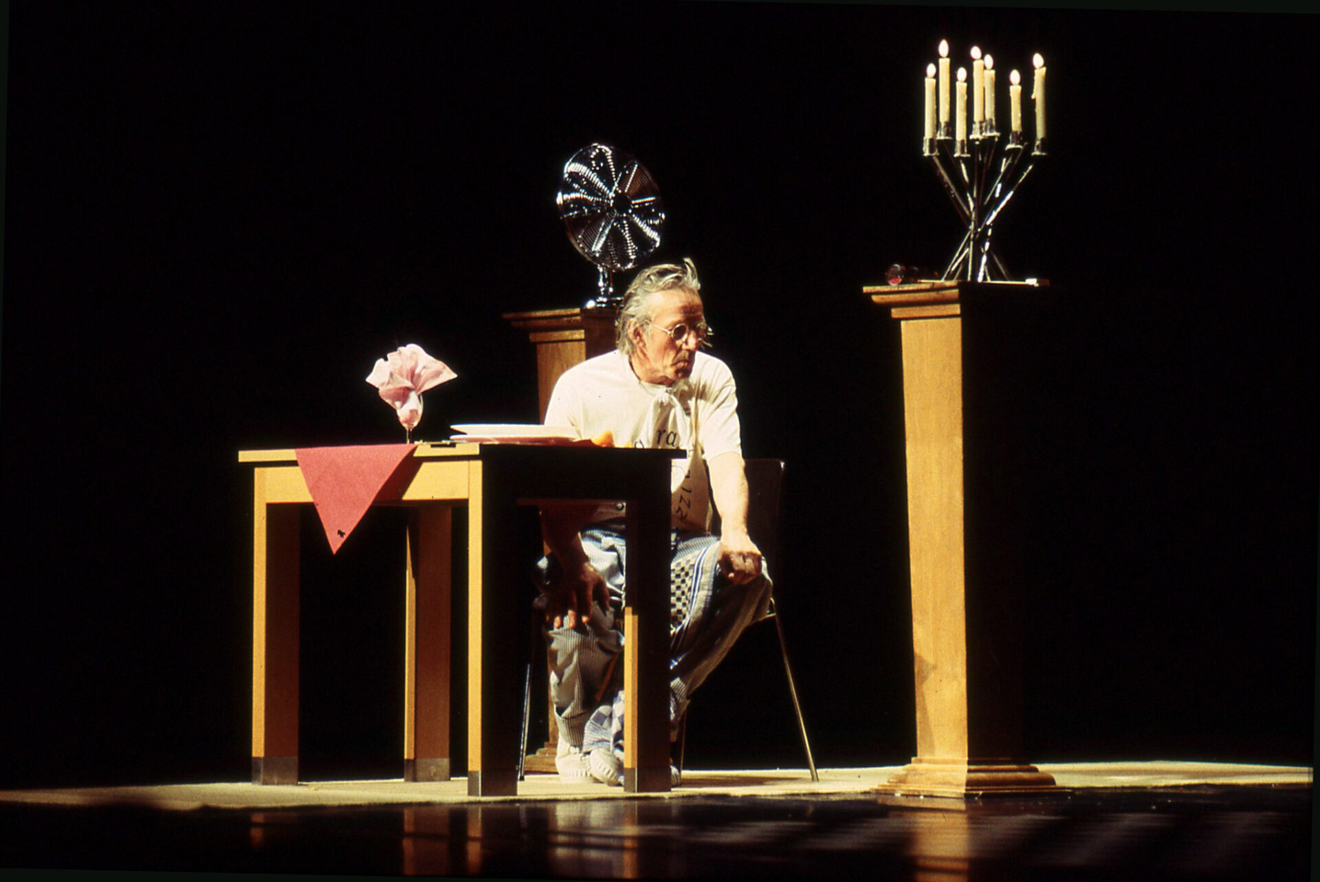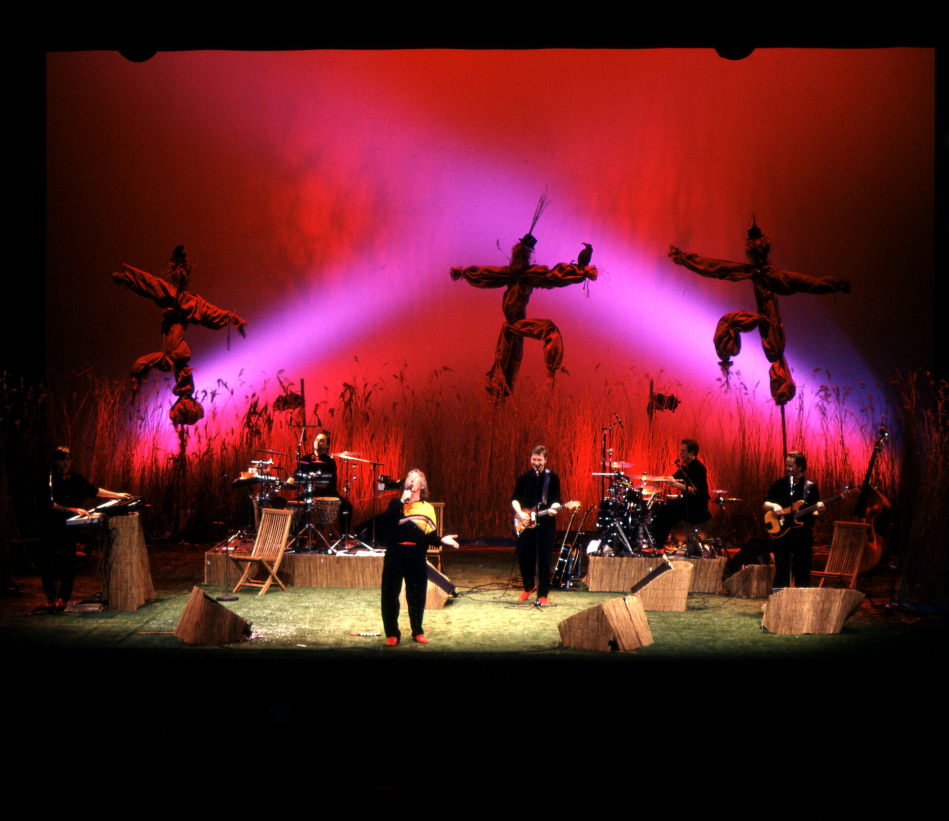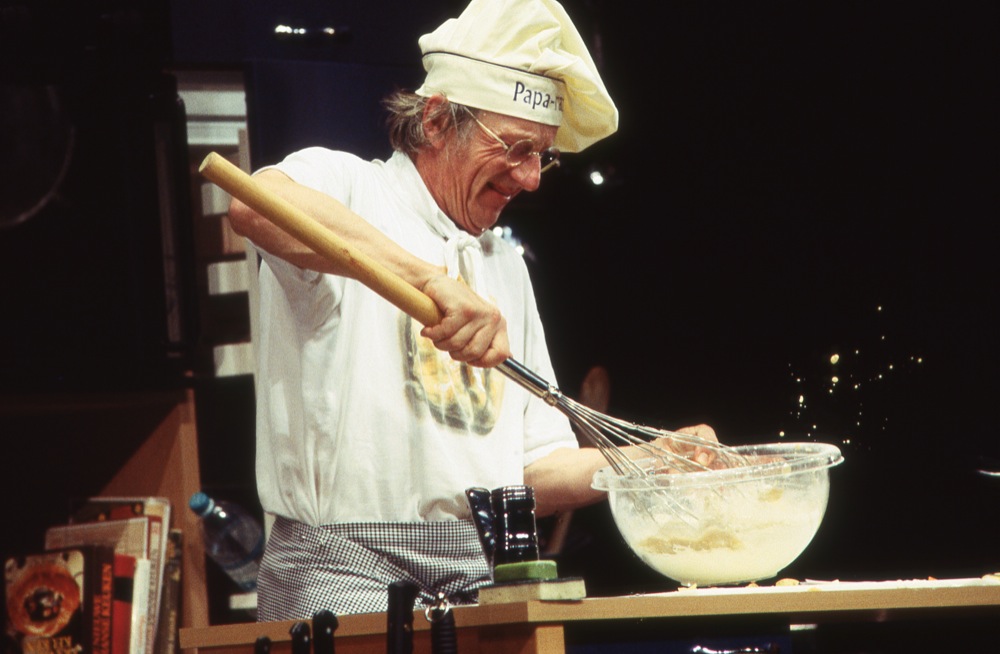 Kort voor de voorstelling brak Freek zijn been. Naar aanleiding daarvan verpakte Hella een deel van het decor in gips, net als het been van Freek. Foto: Marc Mildner