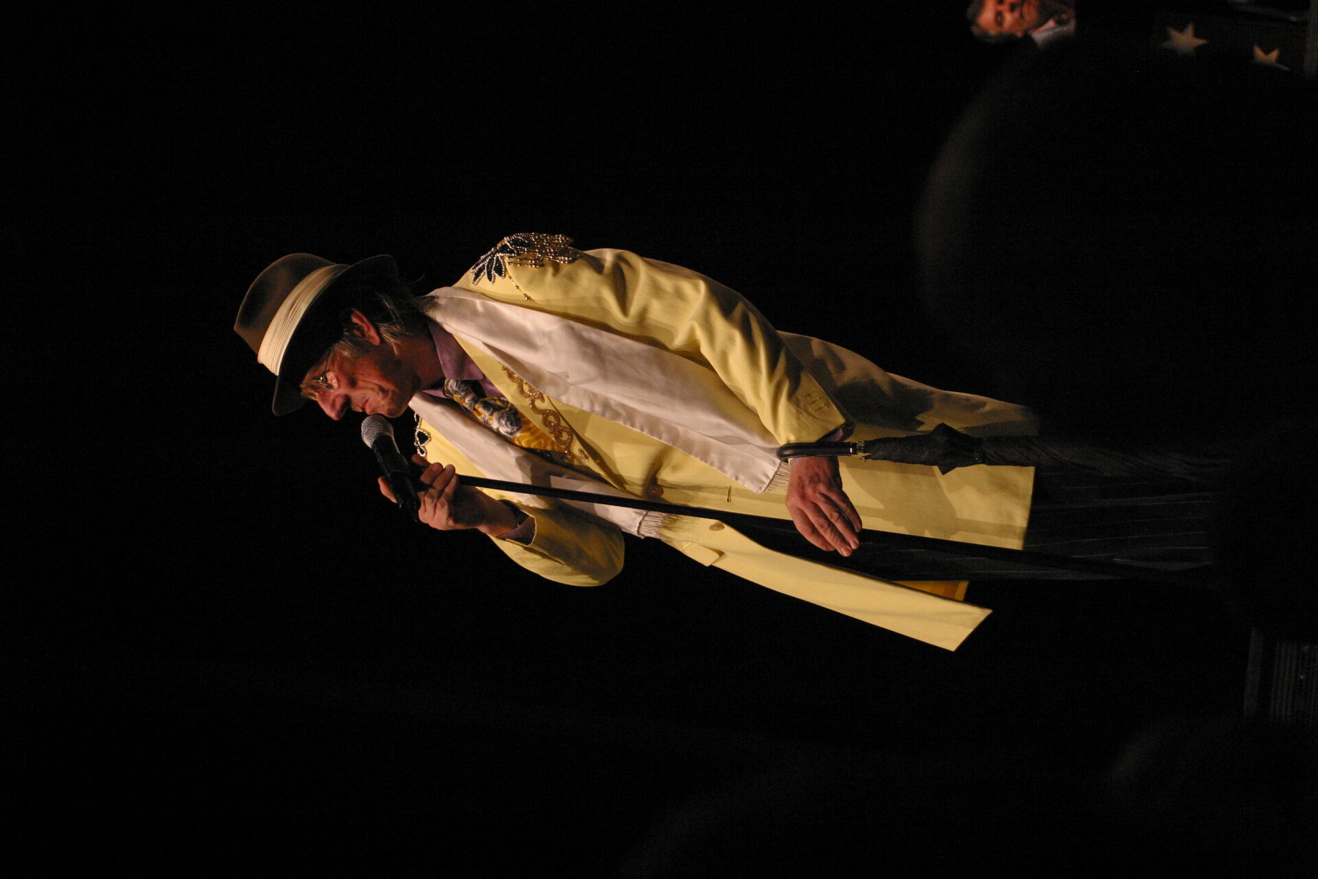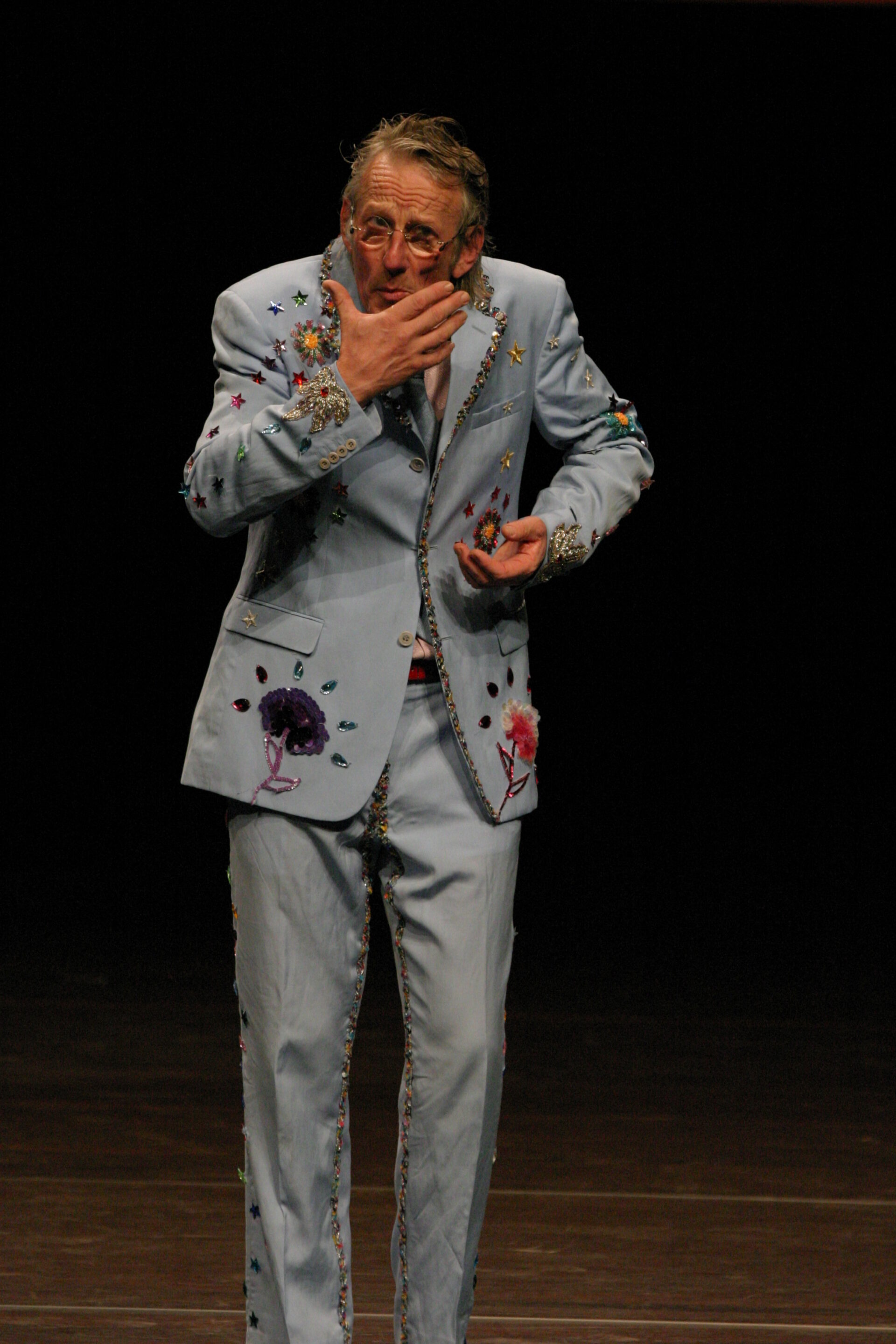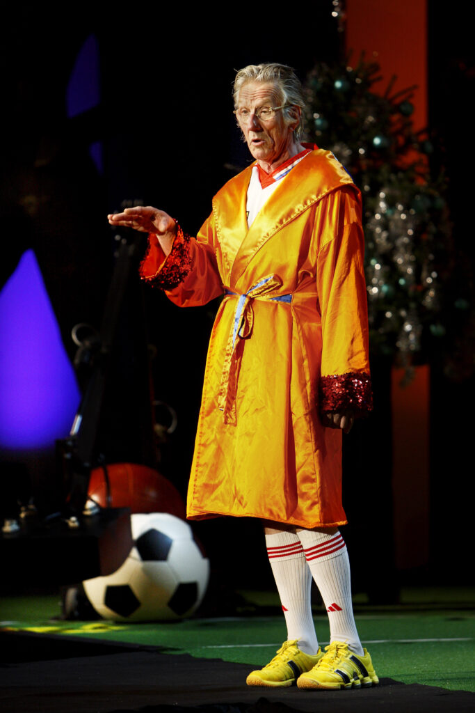 Cabaretier Freek de Jonge tijdens zijn sportshow tijdens het Sportgala NOCNSF 2008 waarin hij terugkijkt op het sportjaar 2008. Vlaardingen, 02-12-2008. Foto: Pim Ras.