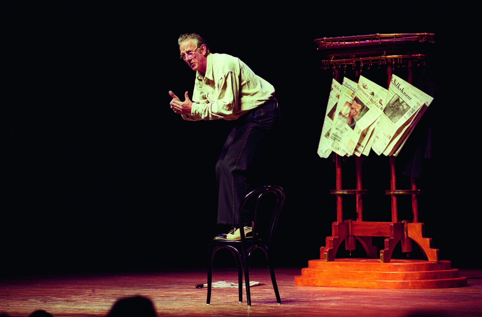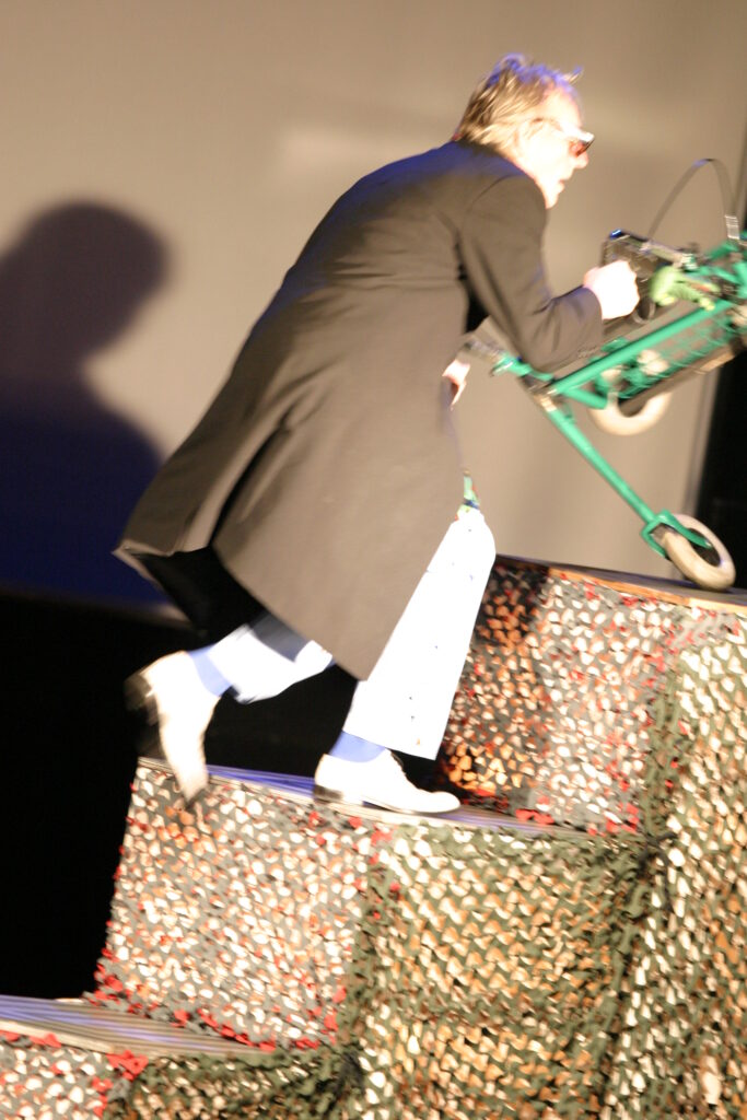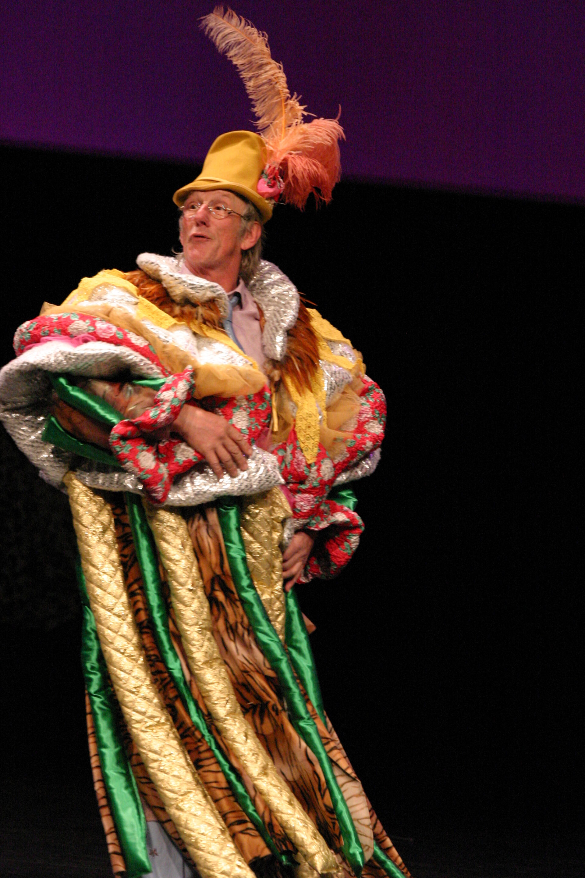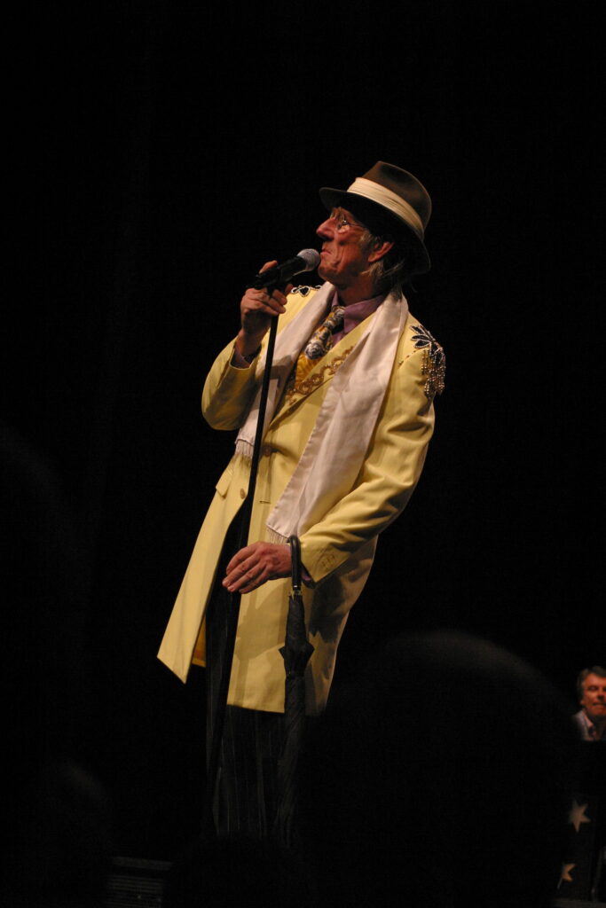 Cabaretier Freek de Jonge tijdens zijn sportshow tijdens het Sportgala NOCNSF 2008 waarin hij terugkijkt op het sportjaar 2008. Vlaardingen, 02-12-2008. Foto: Pim Ras.